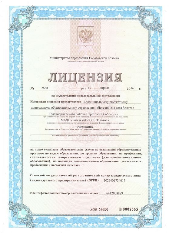 Полное наименование образовательной организации* Муниципальное бюджетное дошкольное образовательное учреждение "Детский сад села Золотое Красноармейского района Саратовской области"