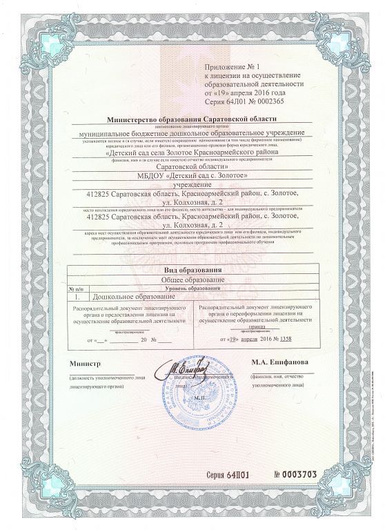 • Места осуществления образовательной деятельности по основным программам профессионального обучения: 412825 Саратовская область Красноармейский район с.Золотое ул. Колхозная д. 2